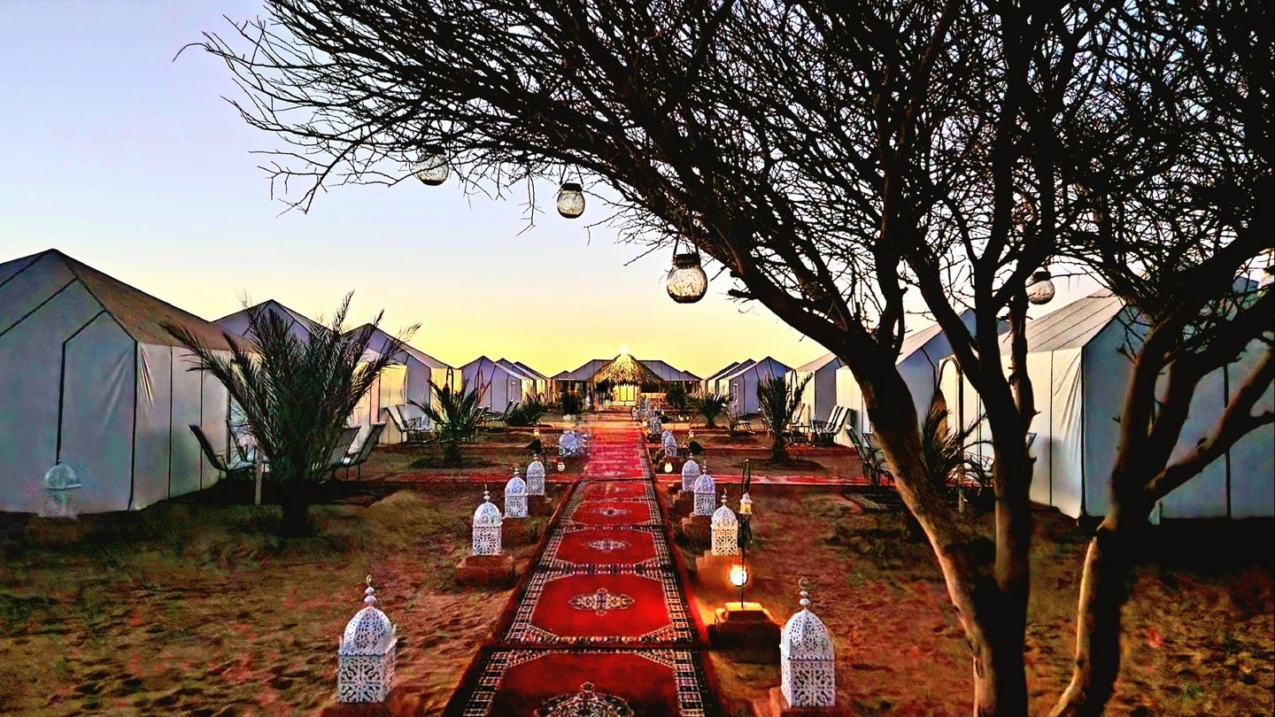 Upon reaching our luxury desert camp, you'll be welcomed with the aromatic warmth of authentic Berber mint tea—an invitation to unwind and savor the tranquility of your surroundings.